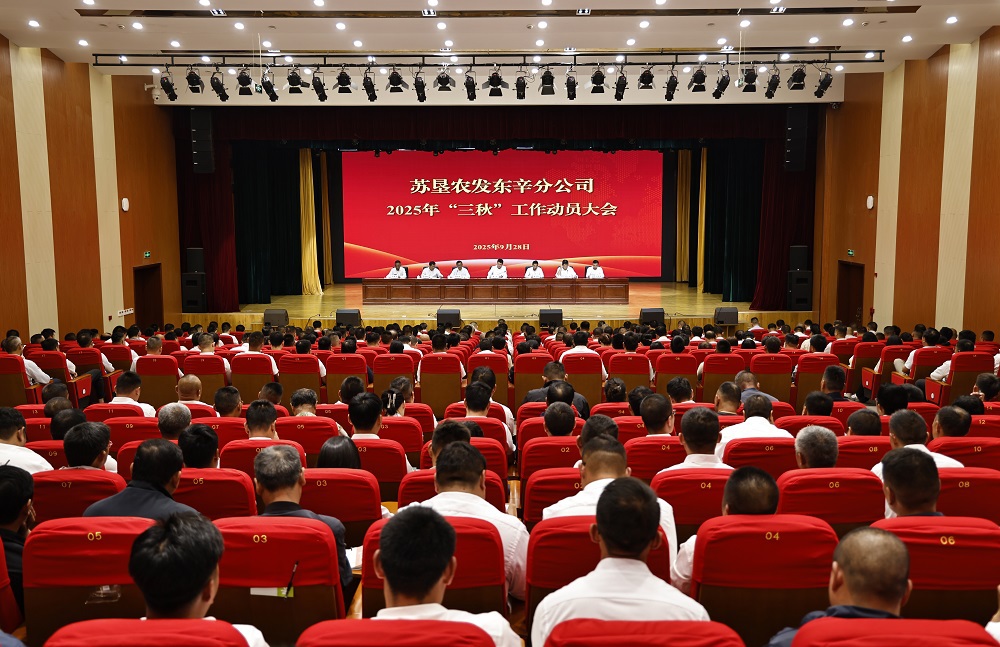 •        為深入貫徹落實蘇墾農(nóng)發(fā)“三秋”工作動員會議精神,全力以赴打好“三秋”攻堅戰(zhàn),9月28日下午,蘇墾農(nóng)發(fā)東辛分公司在文化活動中心召開2025年“三秋”工作動員大會。